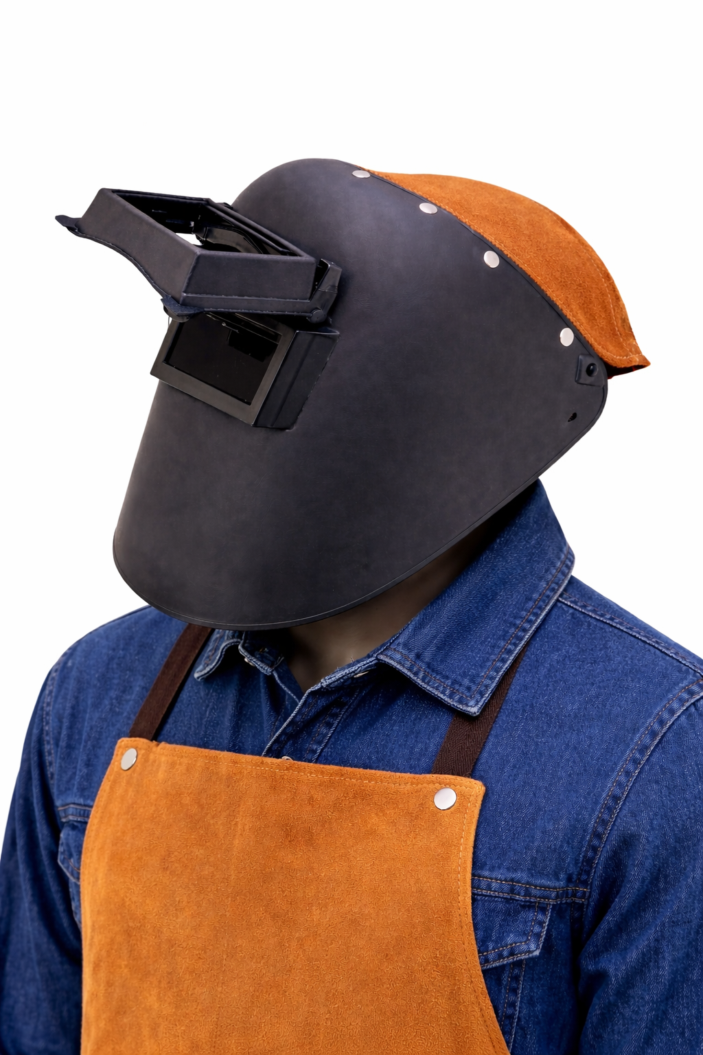 Dayanıklı yapısı ve sade tasarımıyla profesyonel kullanım için üretilmiş kaynakçı başlığı. Ön kısmı tamamen sert gövdeden oluşur, boyun bölgesinde deri parça bulunmaz. Üst kısımda bulunan süet deri koruma ekstra dayanım ve ısı direnci sağlar.
